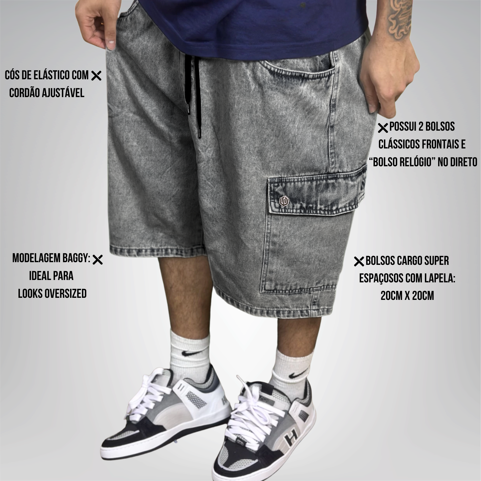 - Modelo: Bermuda jeans oversized