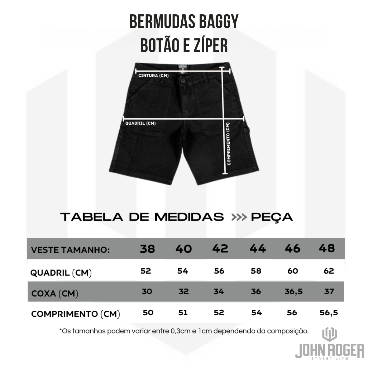 - Tamanhos disponíveis: P, M, G, GG, G1