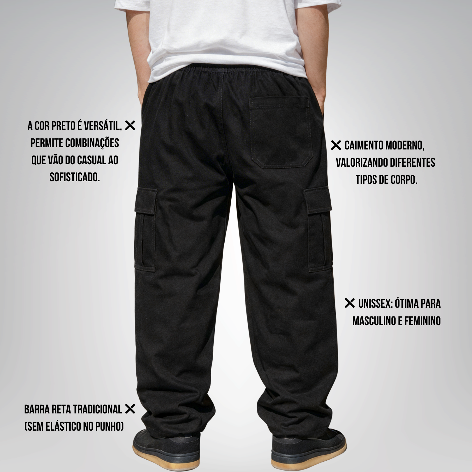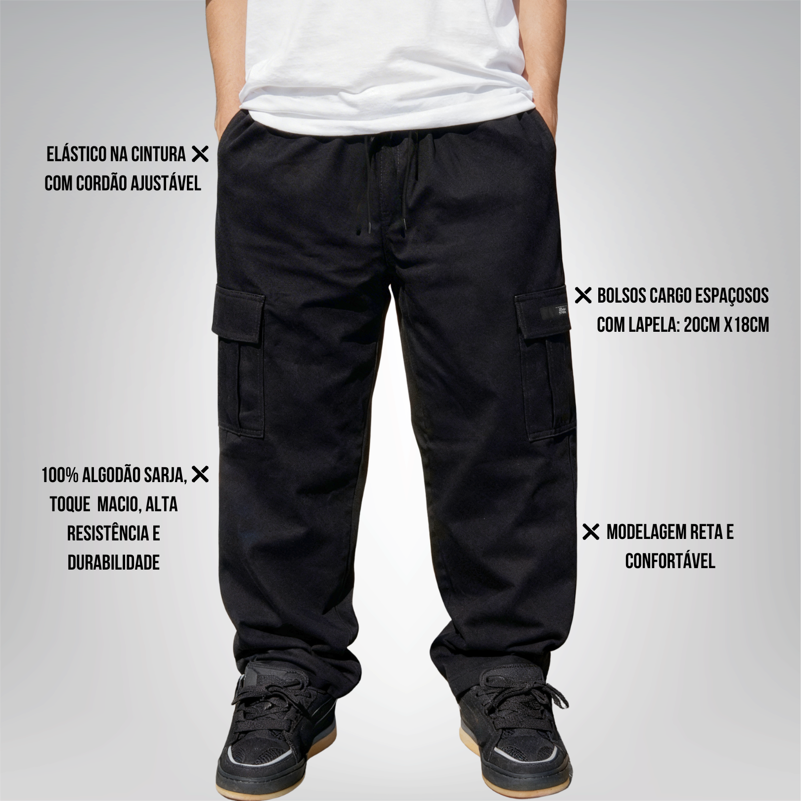 - Modelo: Calça cargo sarja